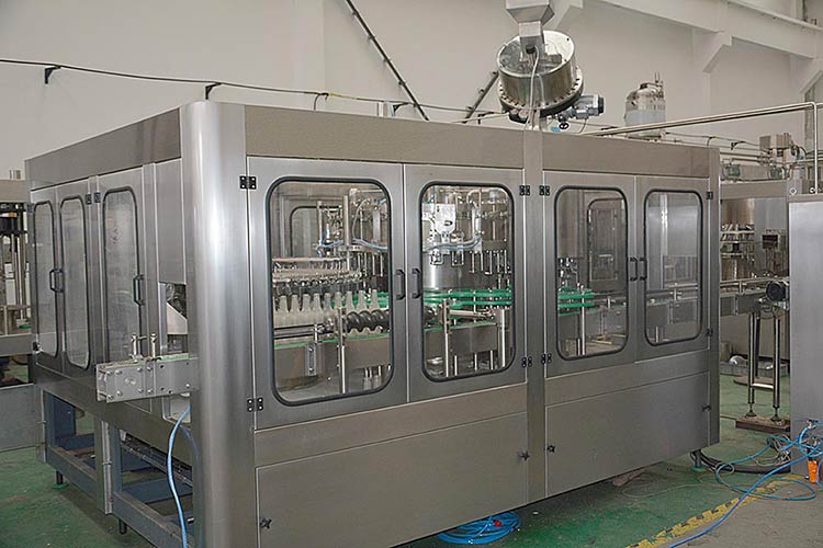 玻璃瓶灌裝機是中浩機械參照國外先進灌裝機技術并結合本公司多年生產經驗進行改造和創新的產品,用于玻璃瓶皇冠蓋、鋁蓋、三旋蓋的水灌裝及封口。