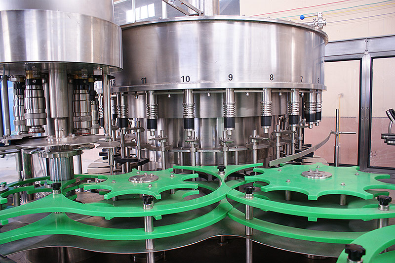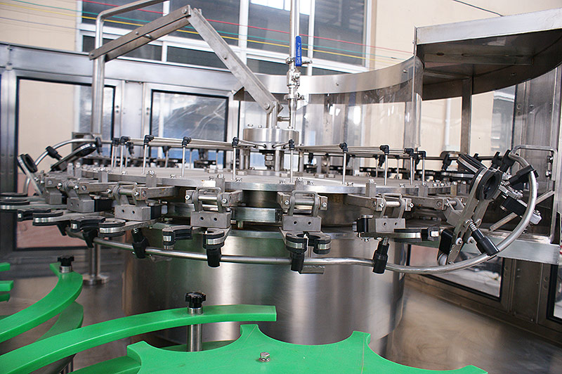 純凈水灌裝機械采用了大量的新技術、新工藝、新結構,產品質量處于同行業先進水平。其特點是瓶子的頸部卡在星輪形板的卡瓶板與上形板之間,由星輪傳動帶動卡瓶板轉動而實現瓶子的傳送,從而實現全自動洗瓶、灌裝、封蓋三大工序的,具有瓶子磨損小、瓶型更換簡單、傳動準確平穩、工藝流程科學等優點。此外,本純凈水灌裝設備所有與液體接觸的零部件全部采用進口優質不銹鋼材料或耐磨、耐臭氧、食品級工程塑料,電氣系統多數選用進口元件,食品衛生條件符合國家標準,性能穩定可靠,設備故障率低,實現全自動化控制,并且有完善的售后服務,深受國內外用戶普遍歡迎,是各類軟飲料生產企業選擇的理想灌裝設備。