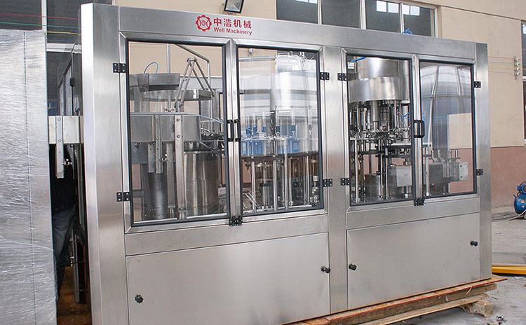 塑料瓶灌裝設備集沖洗、灌裝、旋蓋于一體,全過程自動化運行,主要適用生產(chǎn)聚酯瓶、塑料瓶灌裝果汁、礦泉水、純凈水、茶等。本機大部分電器系統(tǒng)零件均采用國外先進產(chǎn)品,所有與液料接觸的地方均采用優(yōu)質(zhì)的不銹鋼材料制作,主關(guān)鍵部件采用數(shù)控機床精密加工, 整機光電檢測各部件的運行狀況,無瓶不灌裝,無瓶不送蓋,自動化程度高,操作簡易,具有耐磨、穩(wěn)定、故障率低等特點。中浩機械是專業(yè)