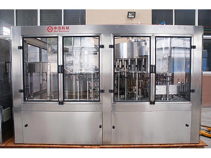 全自動灌裝機械集沖洗、灌裝、封蓋于一體,是是中浩機械在引進、消化吸收國內外同類產品的基礎上,并結合本公司多年生產的經驗后研發制造出來的的新產品。