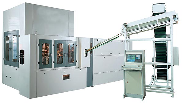 旋轉式吹瓶機是成功引進外國先進技術,憑借中浩機械卓越的設計能力和制造能力,研發出了具有國際先進水平的旋轉式吹瓶機。旋轉式吹瓶機主要由吹瓶主機、加熱爐、自動輸送裝置、電控系統、空壓系統等組成。旋轉式吹瓶設備具有自動化程度高、性能穩定、效率高、運行成本低、故障率低等特點。